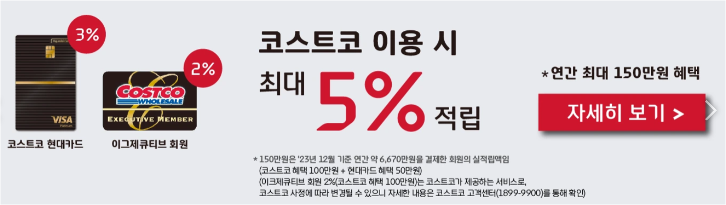 - 이그제큐티브 회원: 고급형 멤버십으로, 연간 약 80,000원의 가입비가 필요하지만, 구매 금액의 2%를 적립할 수 있어 소비량이 많은 경우 유리합니다.