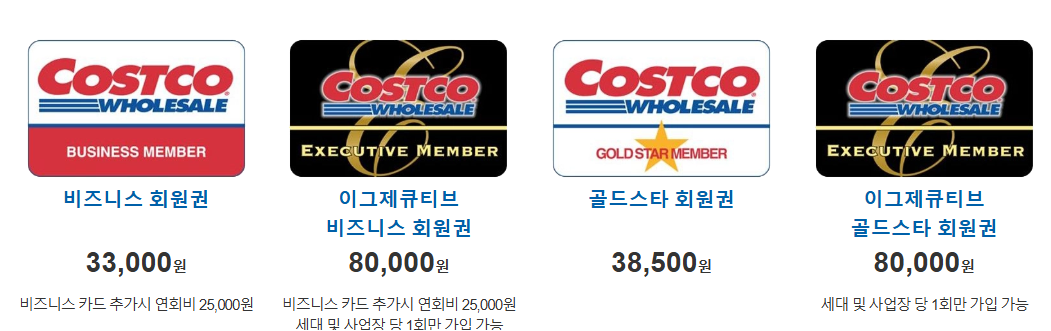 - 일반 개인 회원: 연간 약 38,500원의 가입비로 기본적인 매장 입장 및 구매가 가능합니다.
